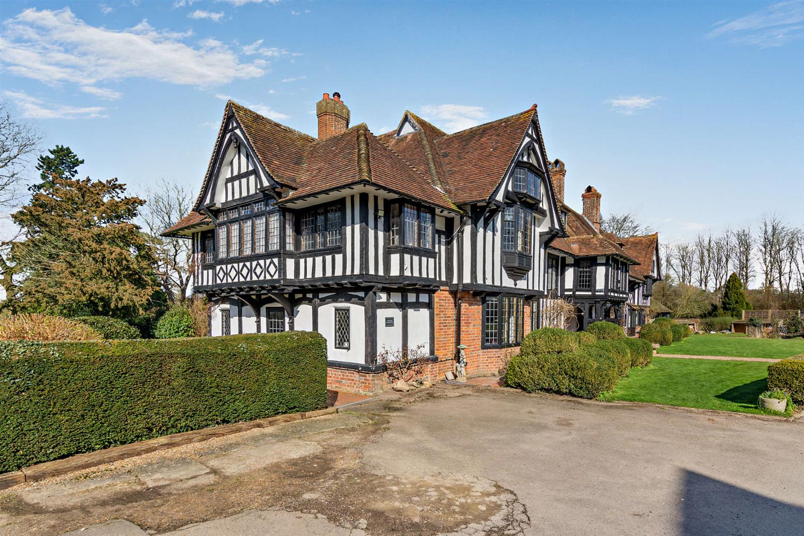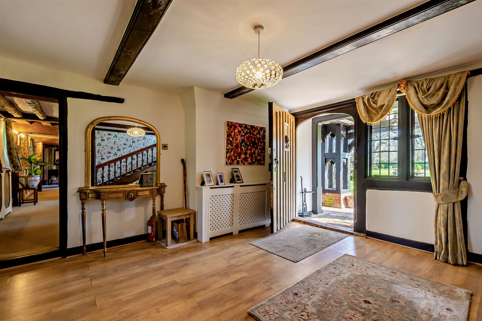 Summary - This distinguished property, recognised for its architectural and historical significance, is rich in period character, featuring an abundance of exposed timber beams and a striking Dragon Beam in the Drawing Room.