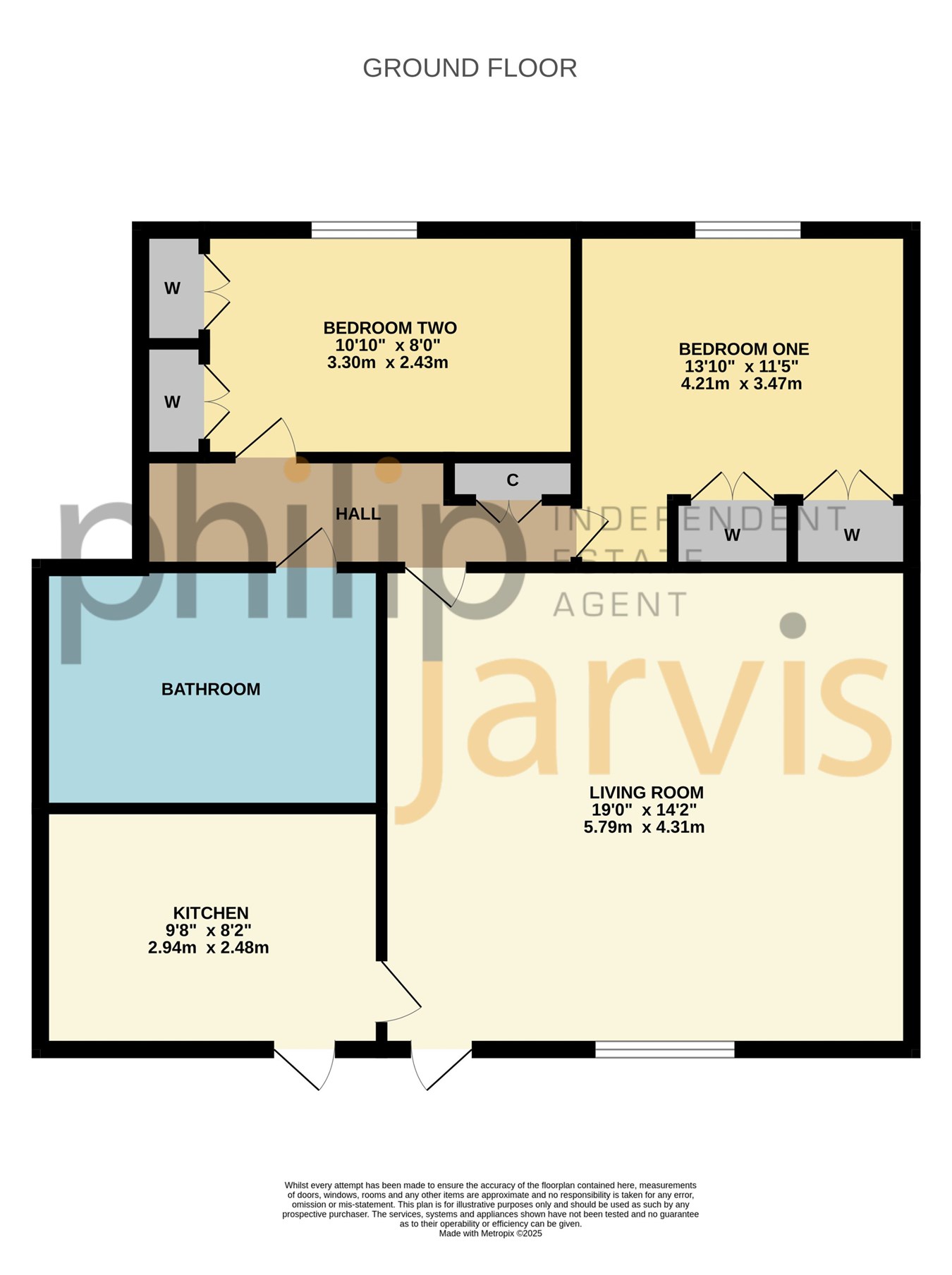 19' x 14' 2" (5.79m x 4.32m) Double glazed window and double glazed door to side. Two electric panel heaters. Television point. Casement door to