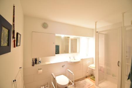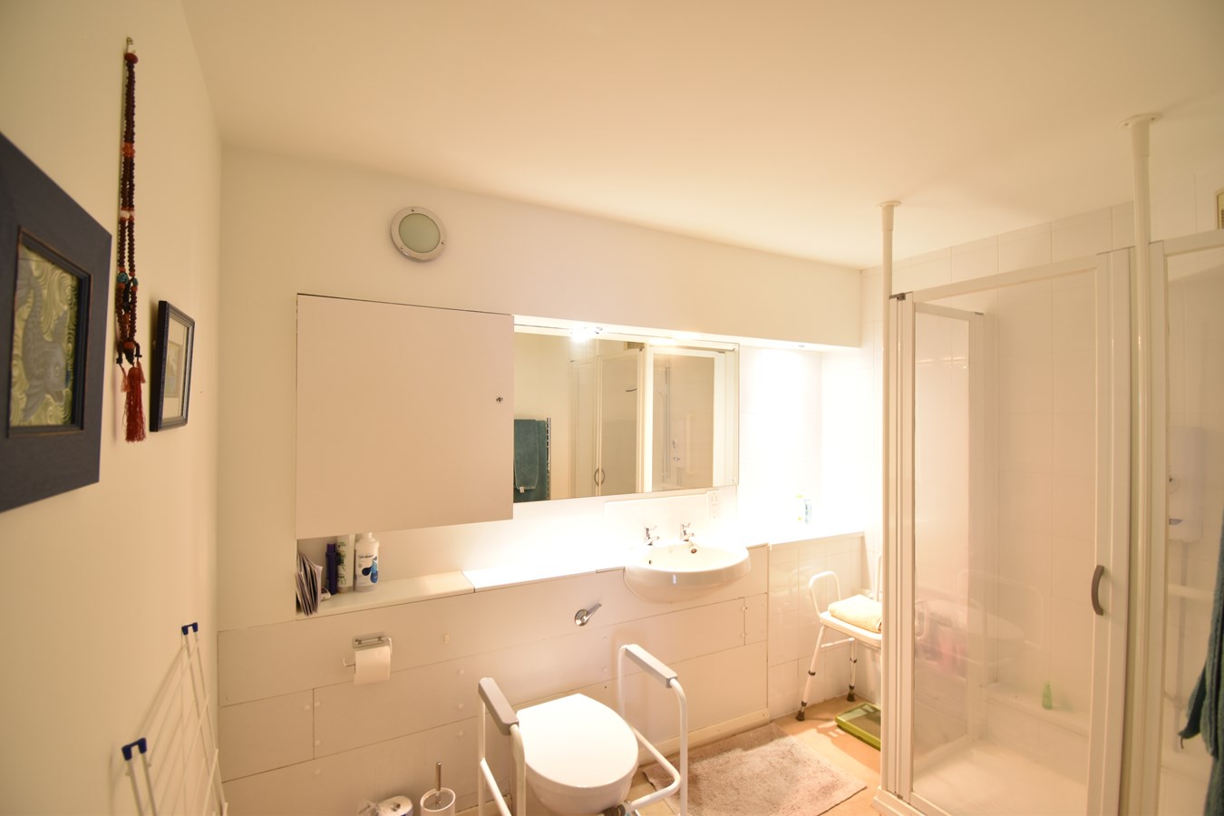 White suite comprising of low level WC, hand basin, large walk in shower cubicle with Mira shower unit. Chrome heated towel rail. Extractor. Localised tiling.