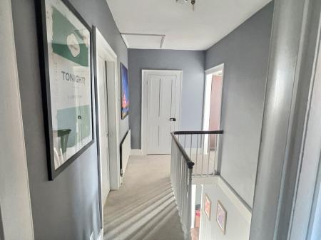 Hatch to loft access. Storage cupboard with hanging rails, shelving and consumer unit. Radiator.