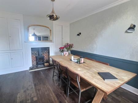 13' 11" x 11' 6" (4.24m x 3.51m) Sash window to front. Radiator. Wall lights. Log burner with feature surround. Book case shelving. Cupboards.