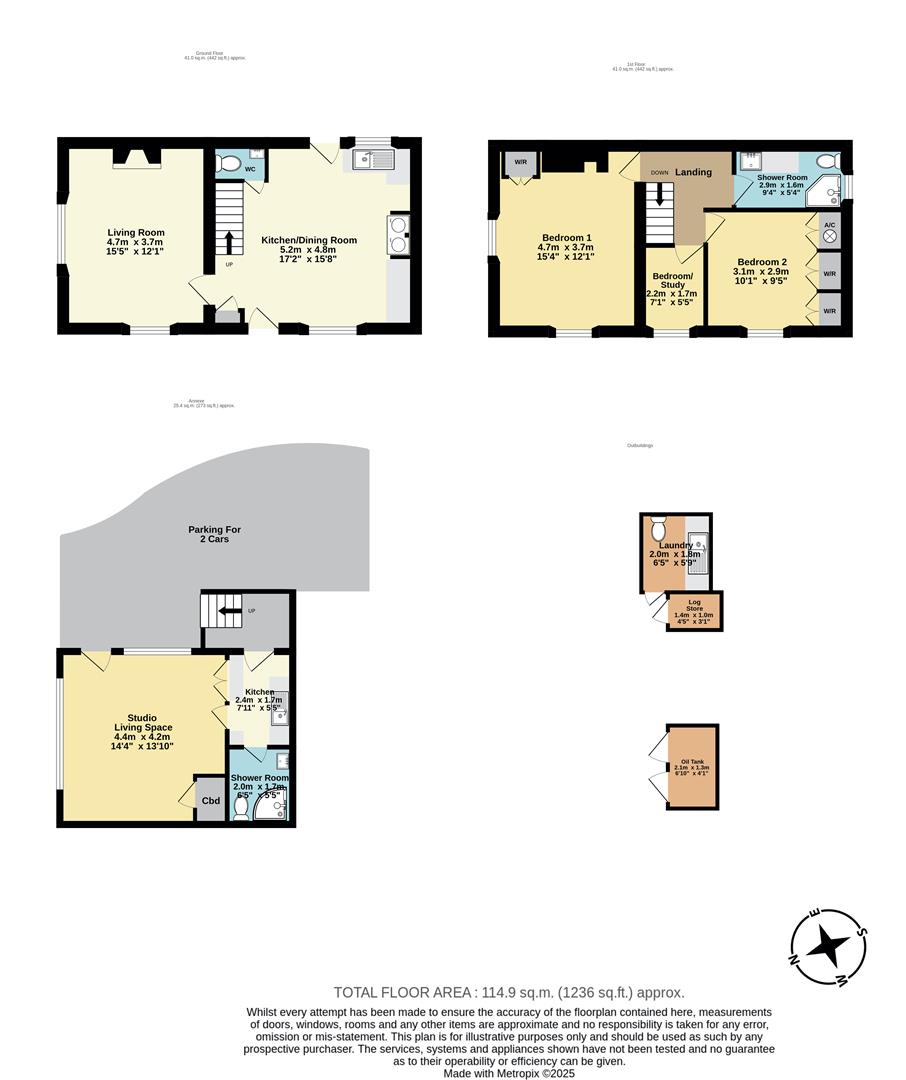 There are a number of outhouses, used for laundry space, storage and oil tank.