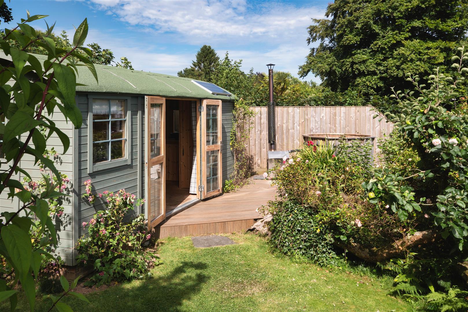 - SHEPHERDS HUT WITH HOT TUB AND FURTHER SUMMERHOUSE BY THE WATER'S EDGE