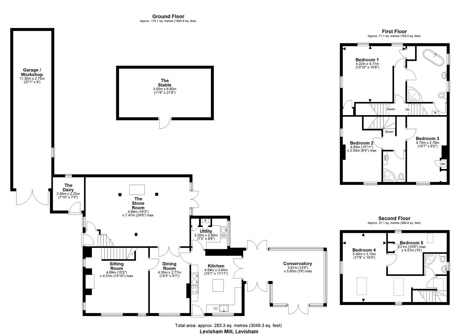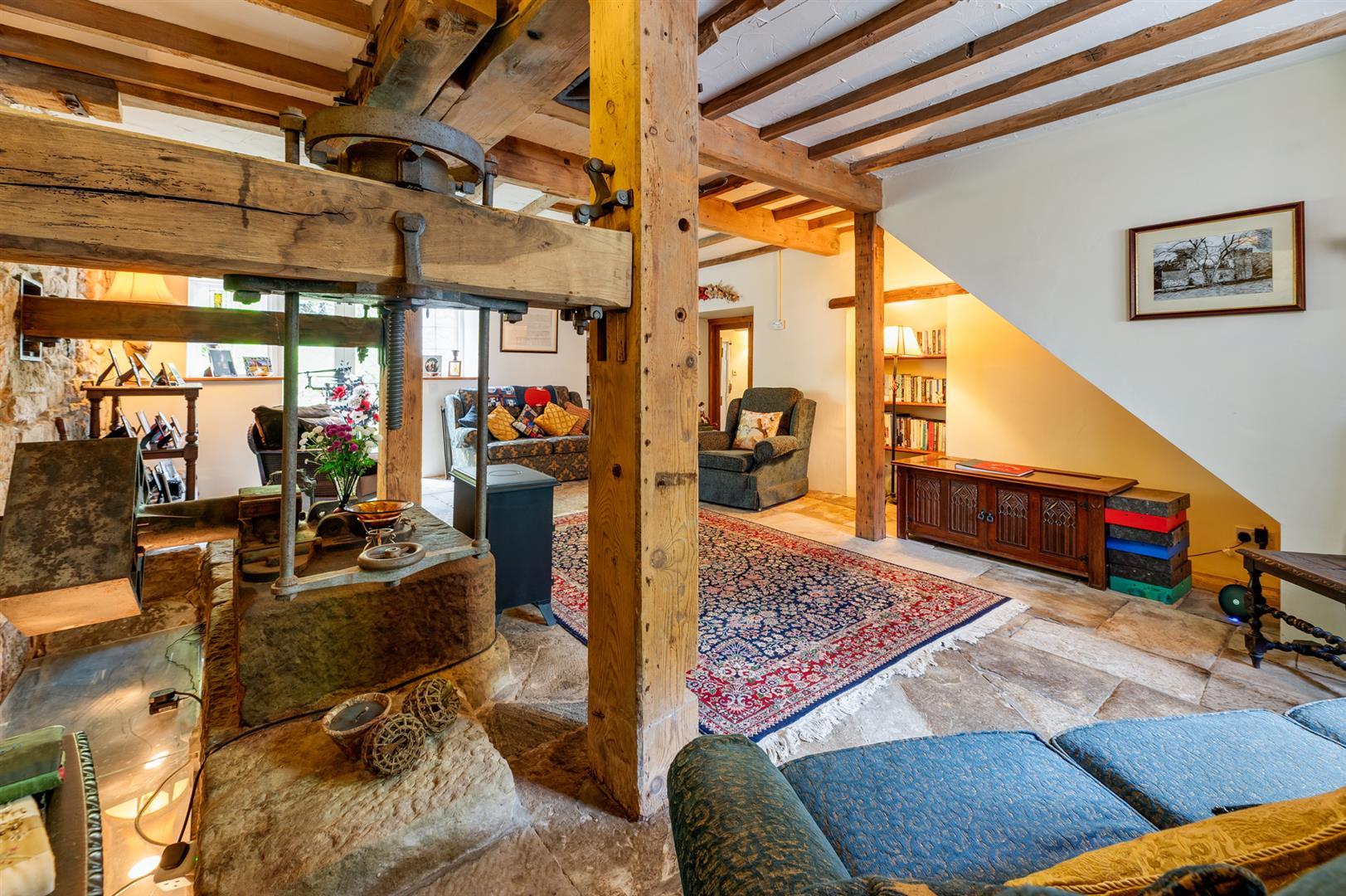 The mill is integrated into the main house, which spans three floors and includes five bedrooms and three well-appointed bath/shower rooms. Period features such as exposed beams, thick stone walls, and the original water wheel and internal mill workings are retained throughout, giving the home a rich sense of heritage and character.
