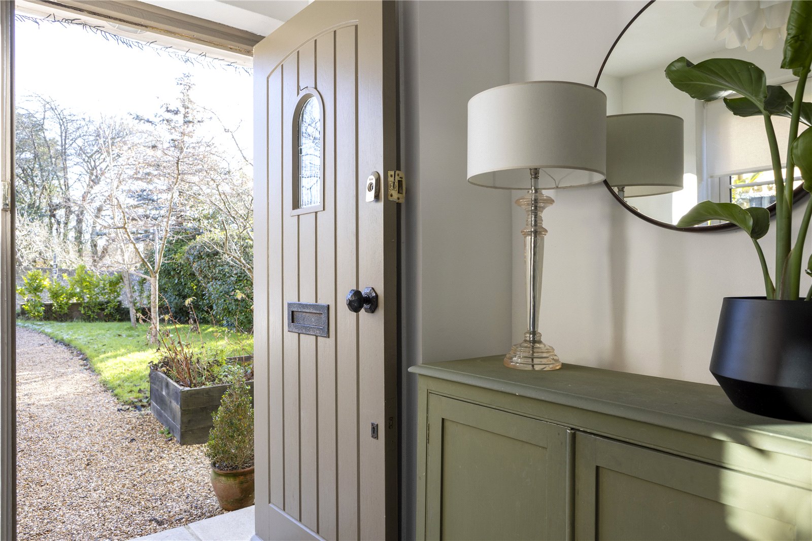 ENTRANCE HALL:This bright and inviting entrance hall sets the tone for the rest of the home, combining charm with practicality. Natural light streams in through the front door’s decorative glazed panel, illuminating the crisp white walls and clean architectural lines. The space offers an immediate sense of warmth, enhanced by thoughtful styling and greenery, while a solid staircase leads elegantly to the first floor. Stone flooring adds character and durability, and the hall provides seamless access to the principal ground-floor rooms, including the kitchen. With its calm, contemporary feel and attractive outlook to the front garden, this is a wonderfully welcoming introduction to the property.