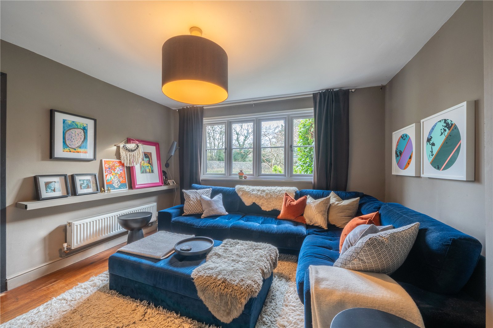 Generous in size, the room comfortably accommodates a substantial corner sofa, with rich textures and deep tones creating an elegant yet homely feel. The soft, neutral wall colours provide an ideal backdrop for artwork and personal touches, while the layout offers flexibility for seating, media, and display areas. This is an effortlessly comfortable living space, perfect for quiet evenings by the fire or entertaining guests in style.