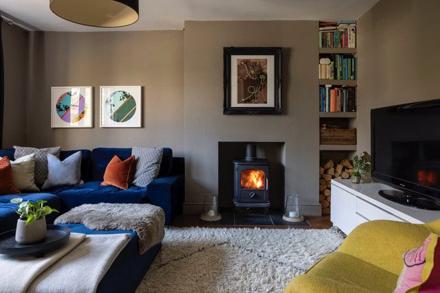 • Cosy sitting room with wood-burning stove, built-in shelving and generous natural light