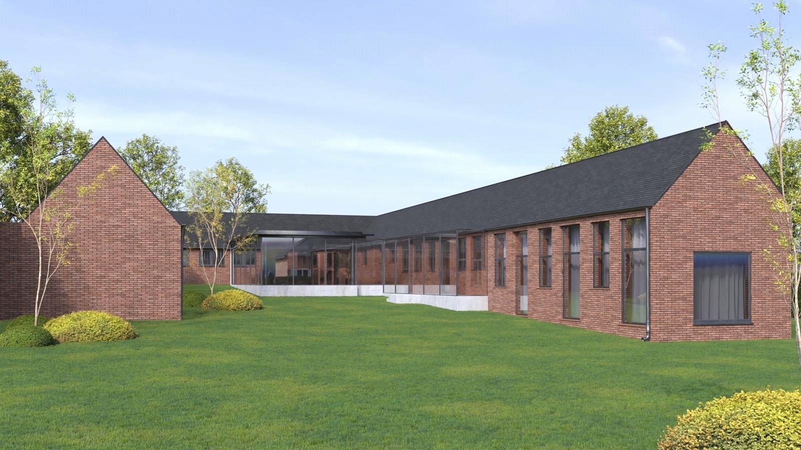 UNIT 2: A planning design currently for a detached 3,488 square foot large single storey bespoke dwelling from existing 19th century red brick buildings and an additional single storey modern extension, to also have an intended portion of the southerly facing grazing meadows