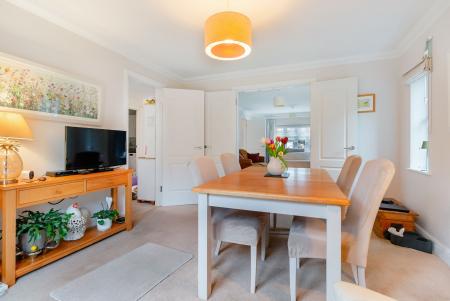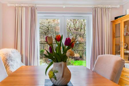 - Dining room with double doors opening to the rear garden