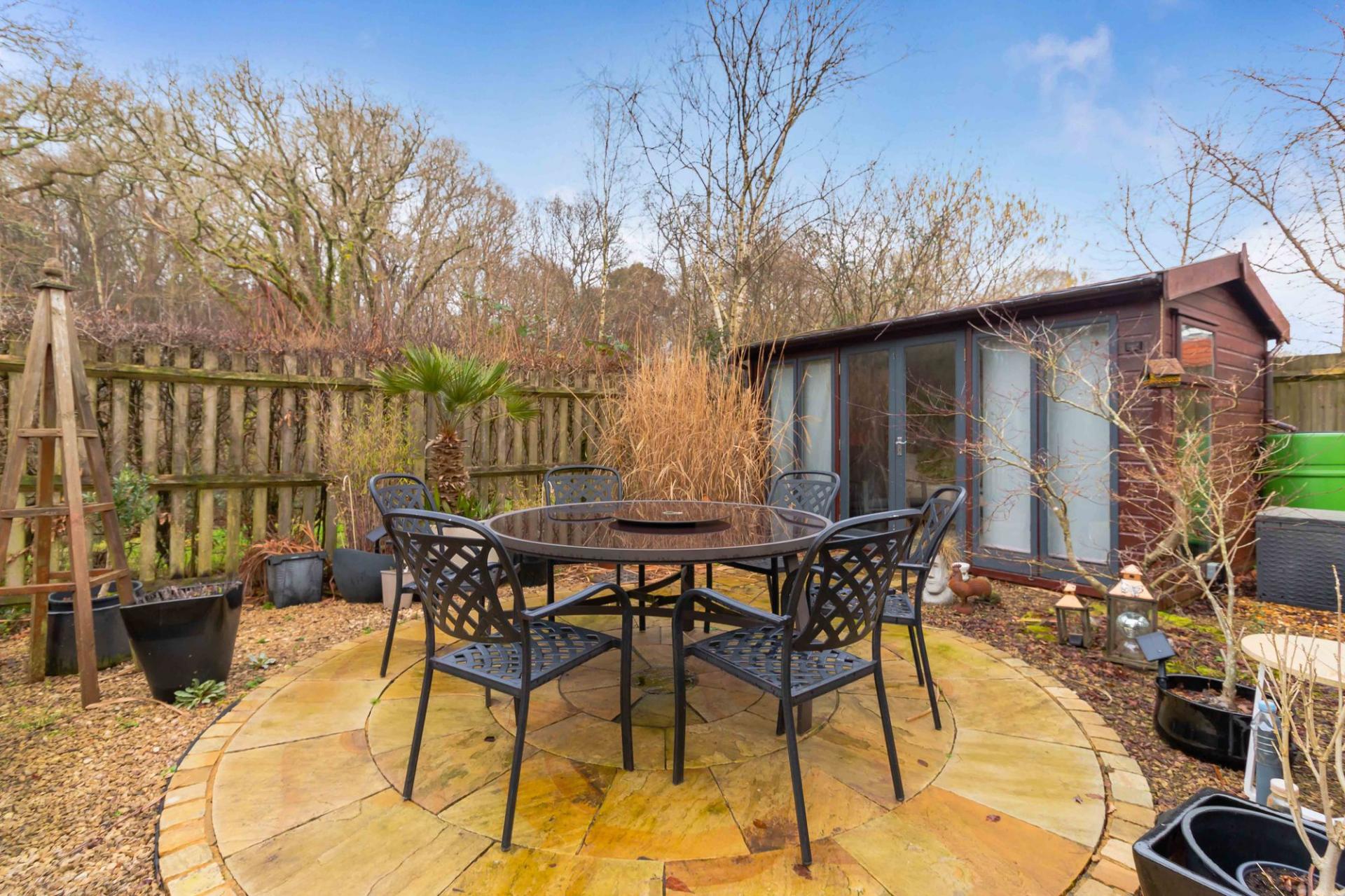 - Spacious rear garden with outbuilding