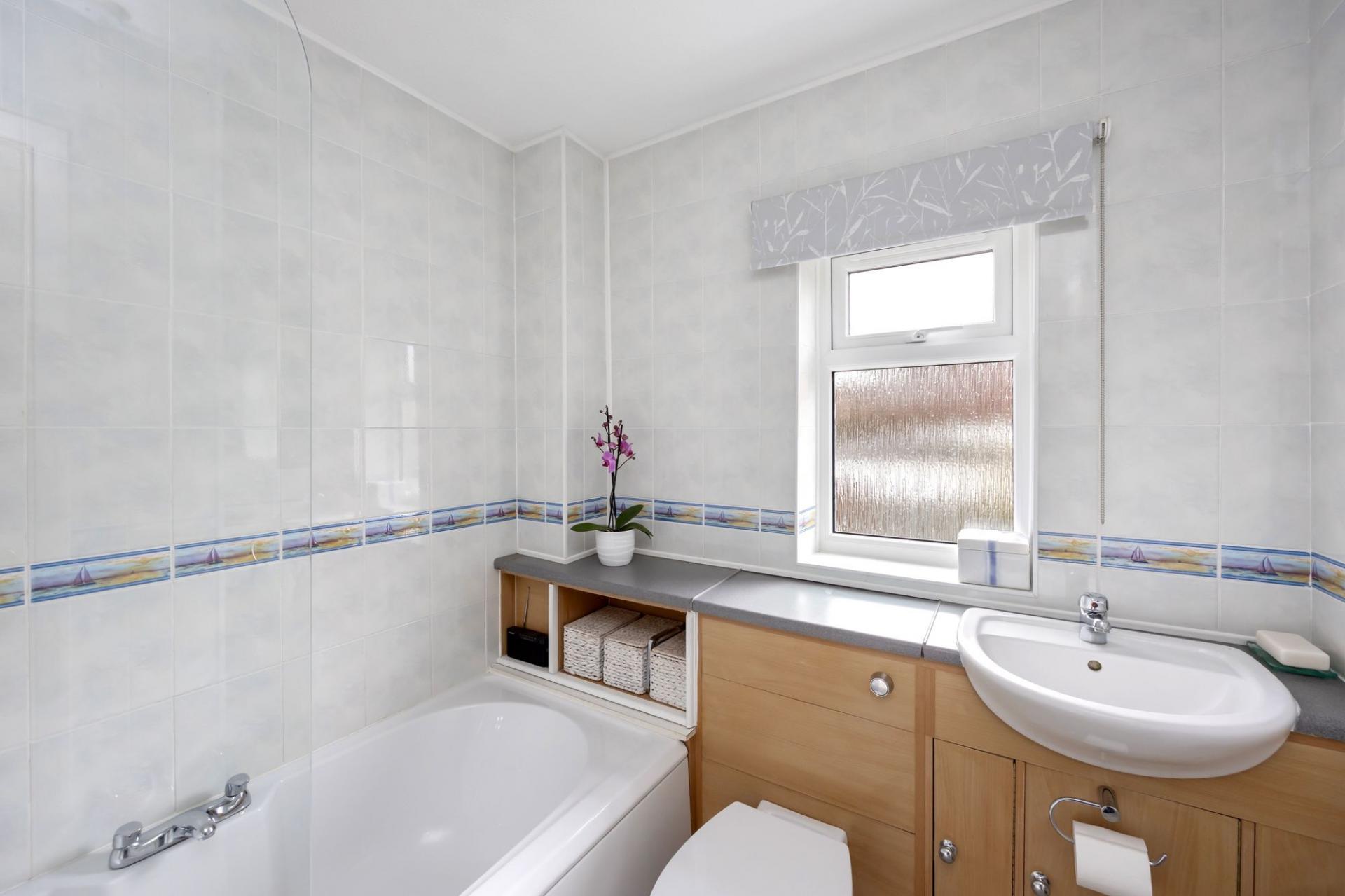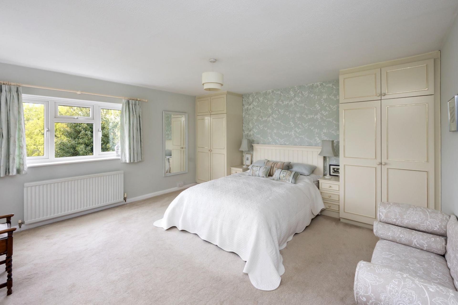 From the entrance hall a staircase rises to the first floor, offering; an impressive principle bedroom with a range of fitted wardrobes, a modern family bathroom, another generous double bedroom and a large single bedroom both of which enjoy built-in wardrobes.
