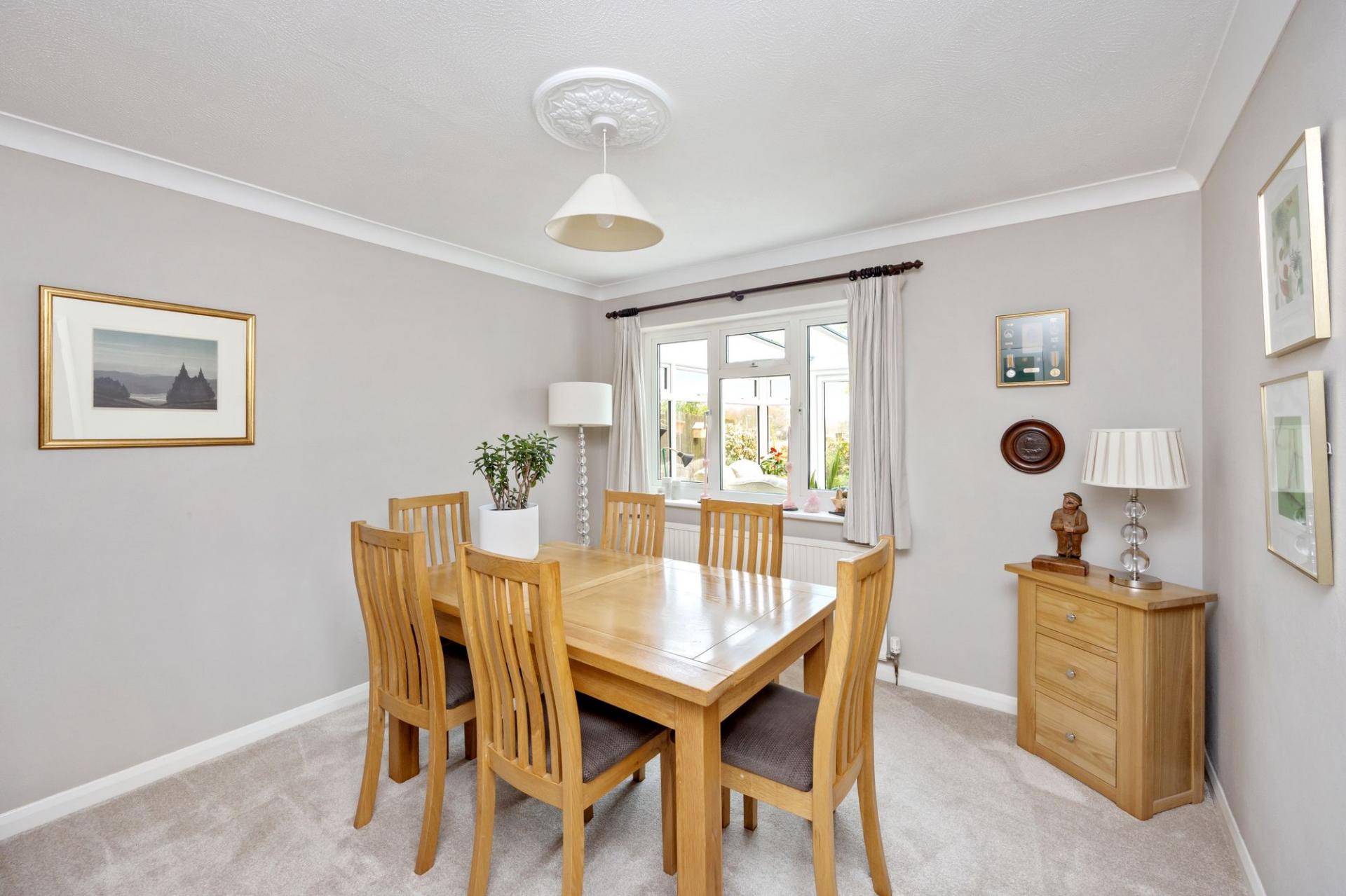 This rarely available property has been significantly improved by the current owners and benefits from, in brief, on the ground floor; a modern kitchen with a range of matching units to eye and base level, integrated appliances and access to the utility room which in turn provides access to the front and rear of the property, a downstairs WC, a formal dining room, a generous living room with an open fireplace and access to the conservatory which in turn offers double doors opening on to the outside seating terrace.