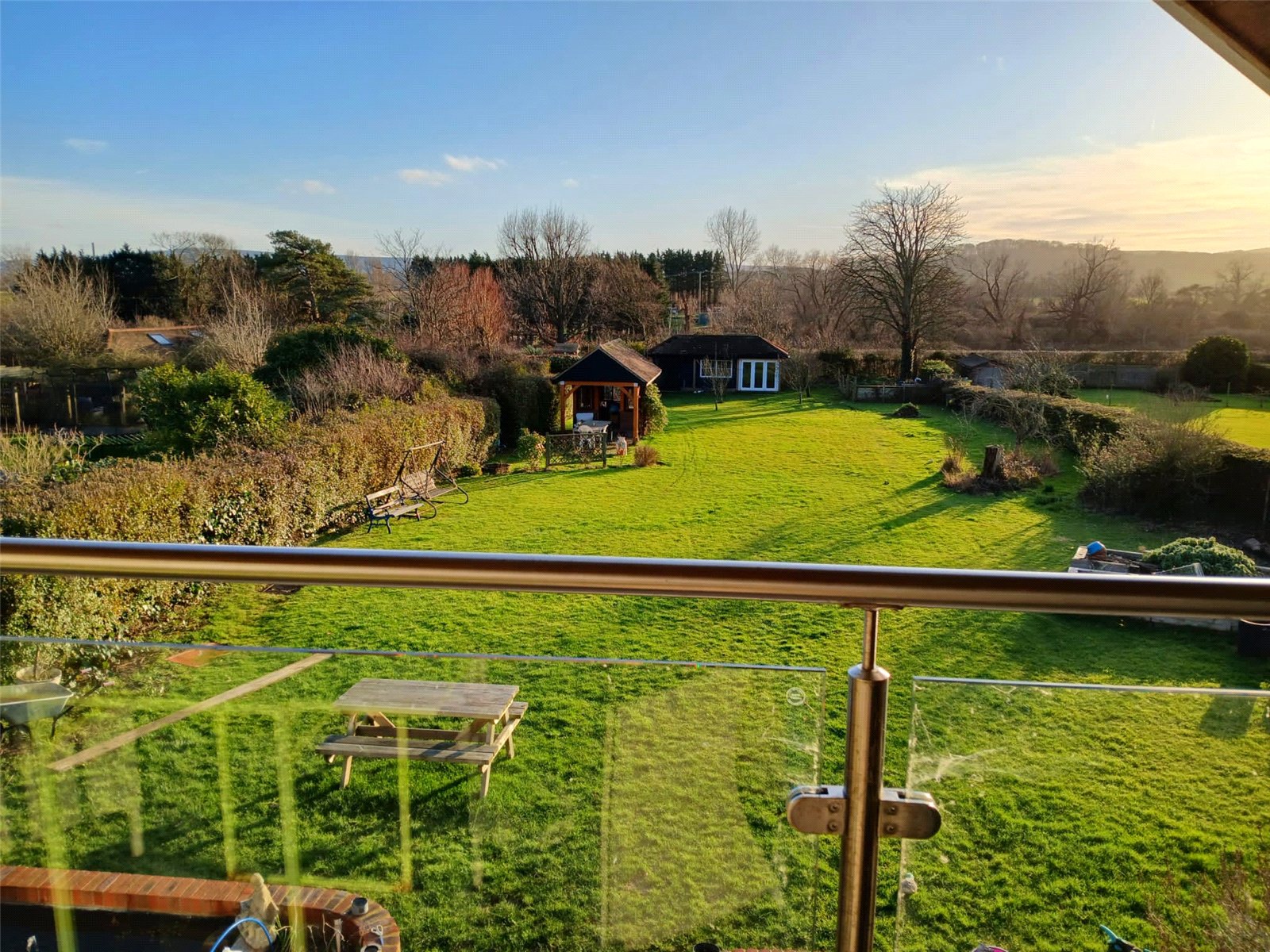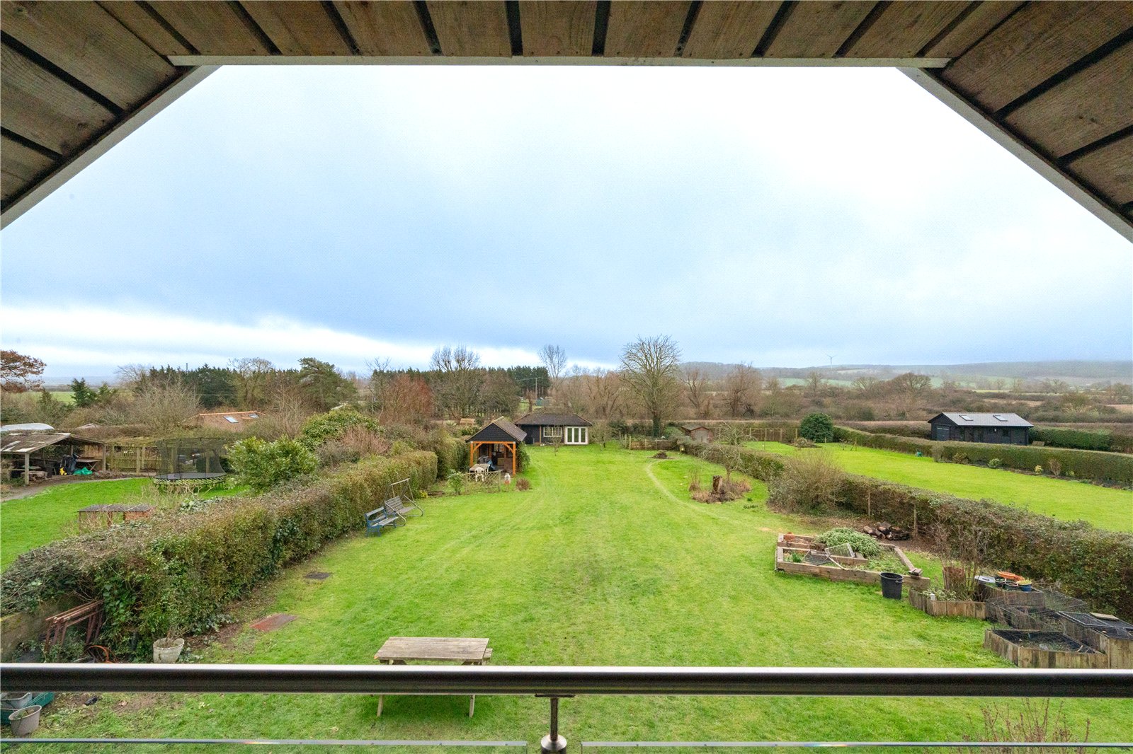 • Five generous bedrooms, including a standout bedroom with a balcony and far-reaching countryside views