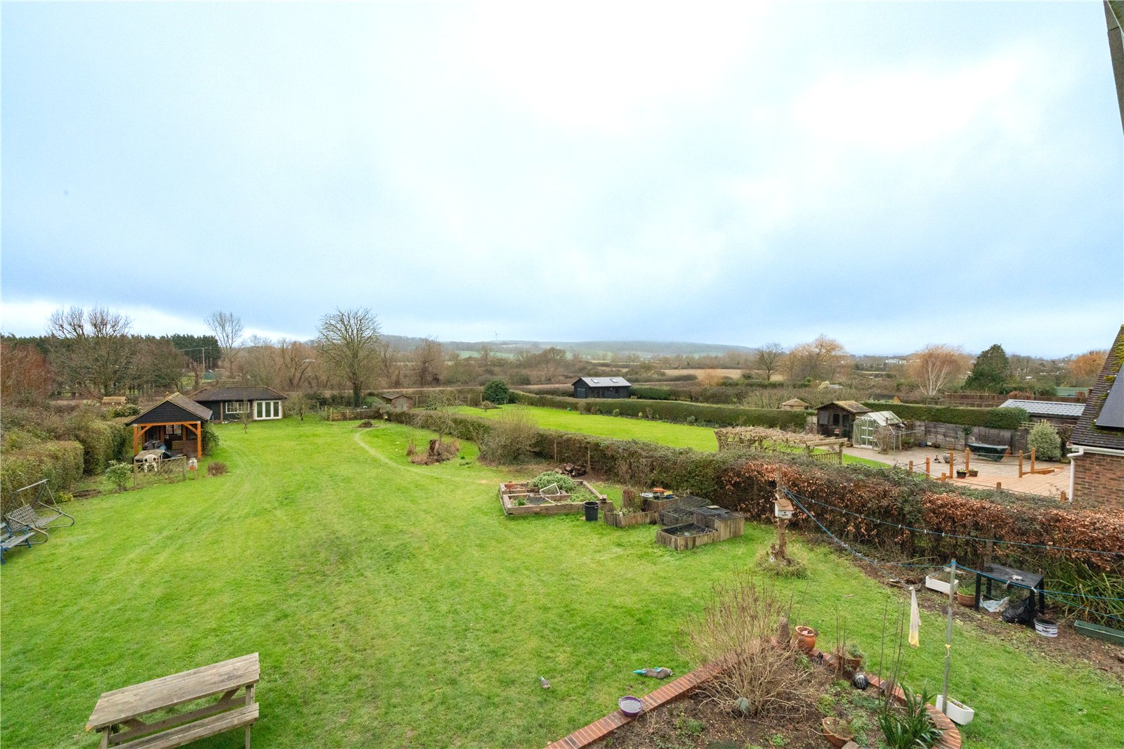 Set within the grounds are a variety of useful and attractive features, including established hedging to the boundaries, raised beds ideal for vegetable growing, and several outbuildings and garden structures that provide excellent storage, workshop space, or potential for hobbies and home working (subject to any necessary consents).