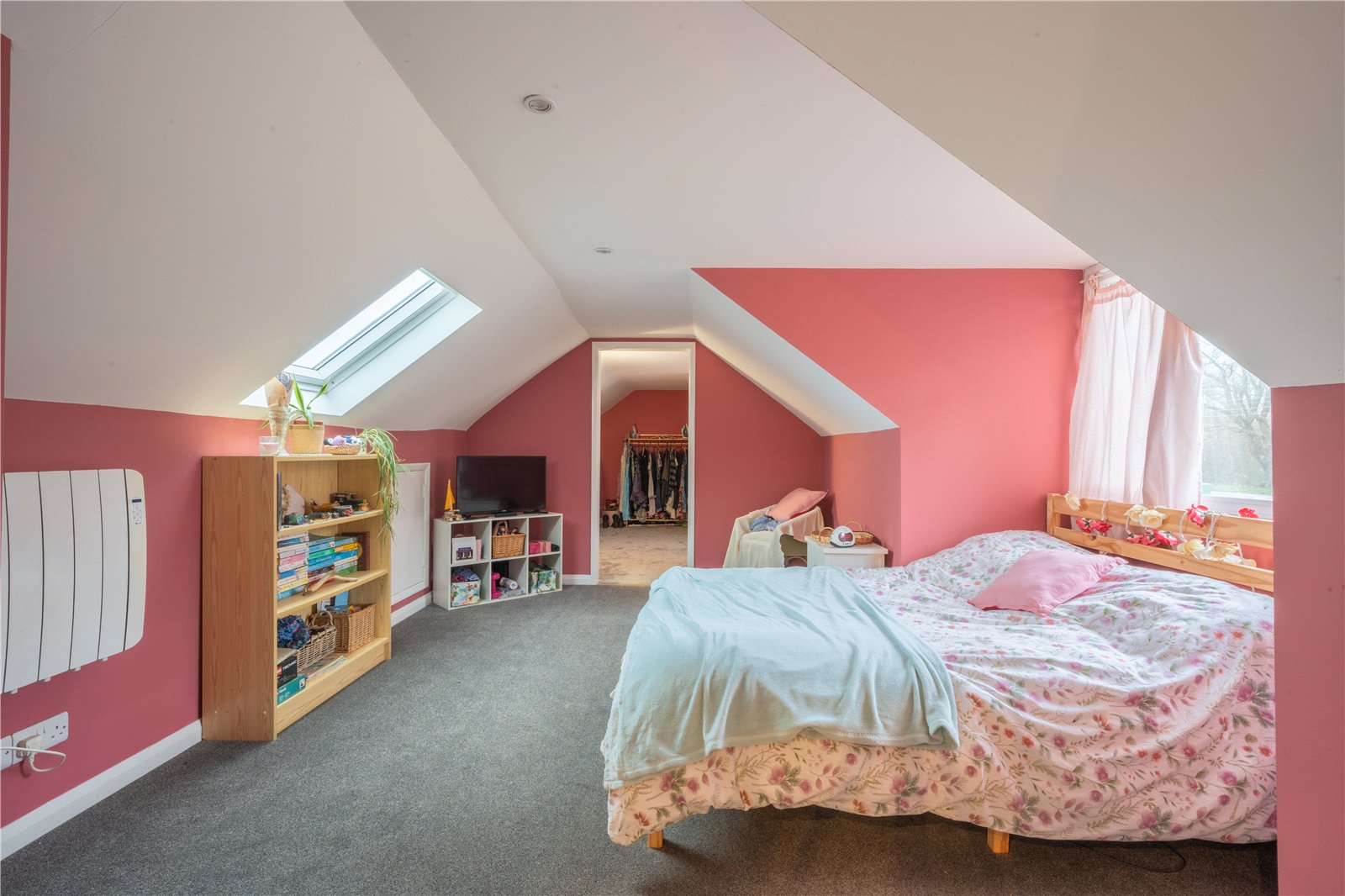 A particular highlight is the walk-in dressing room, accessed directly from the bedroom, providing extensive space for hanging clothes, storage and dressing furniture. This versatile area could equally suit use as a wardrobe room, dressing suite or ancillary storage, adding both practicality and appeal to the bedroom accommodation.