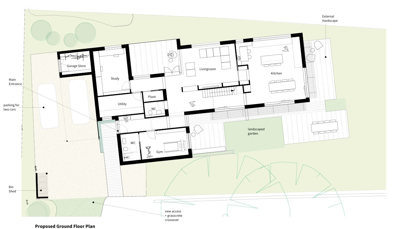 • Ground floor proposed internal accommodation designs are to comprise of a generous sized reception hall, a cloakroom, a study, a living room, an open plan kitchen / breakfast room and adjoining open plan dining room, a separate utility room, a plant room and fourth bedroom with ensuite shower room
