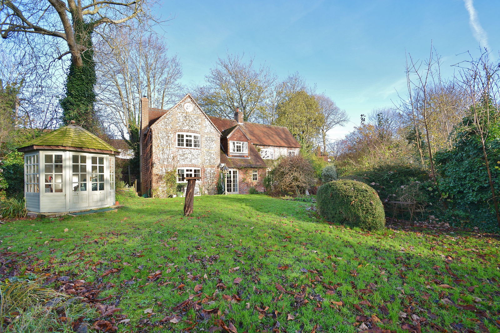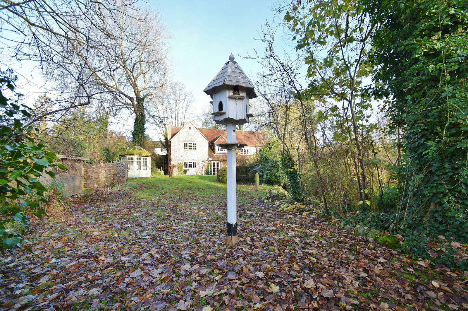 - Enchanting south facing gardens with mature trees and bordered by a stream