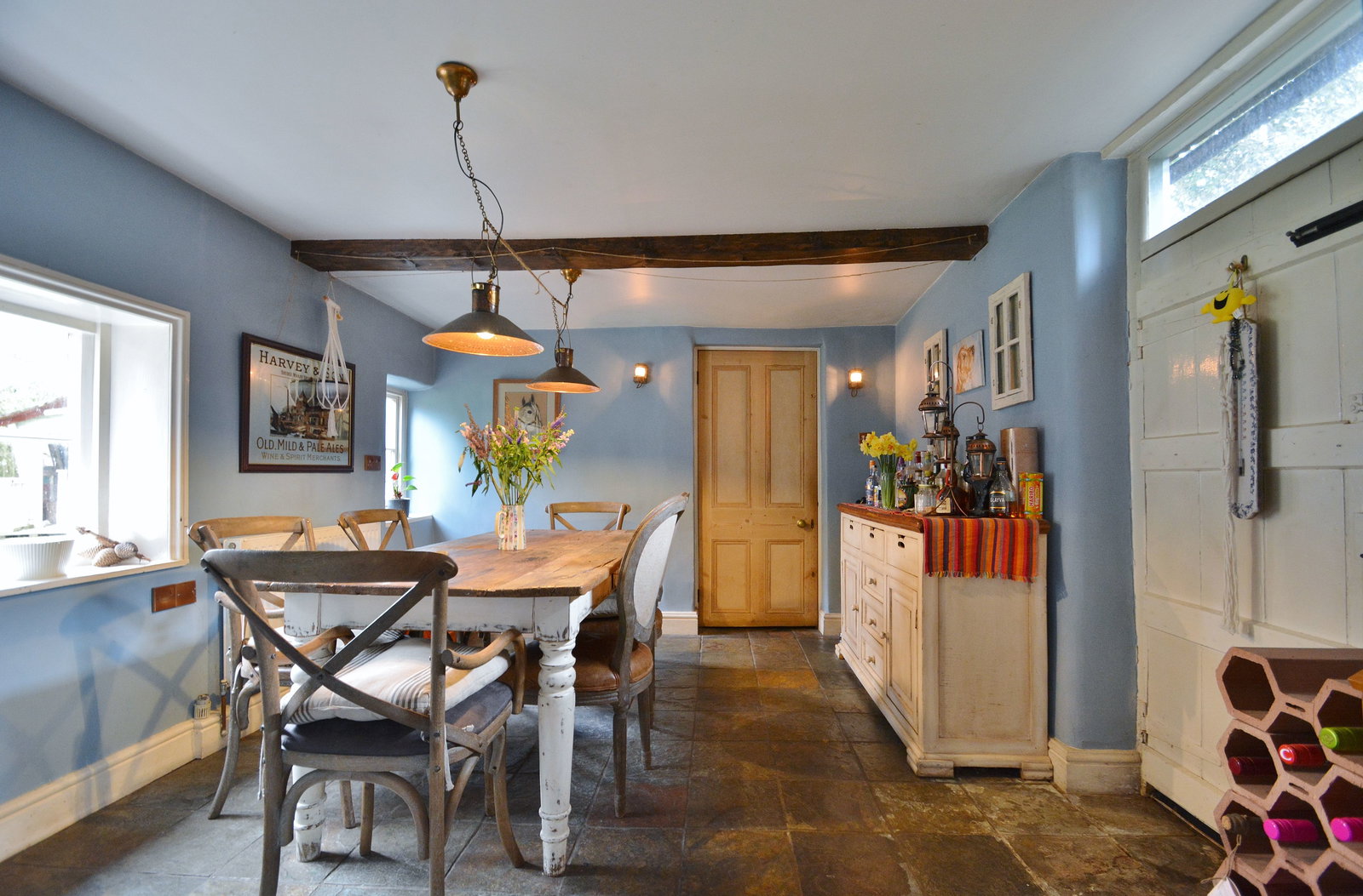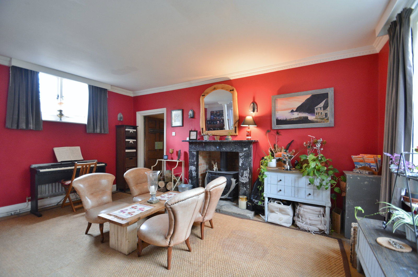 - Five reception rooms, including a main reception with log burner and countryside views