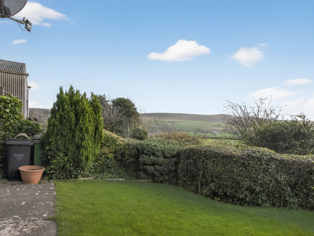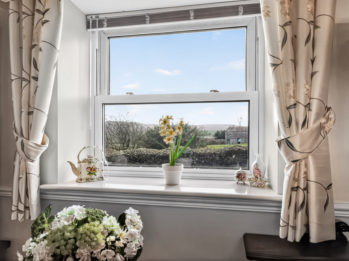The property itself offers generous accommodation with a large, front-facing living and dining room featuring two windows that frame stunning views over open countryside. The well-appointed kitchen is accessed from this space, complemented by a spacious double bedroom and a well-fitted house bathroom. Ample built-in storage is provided throughout.