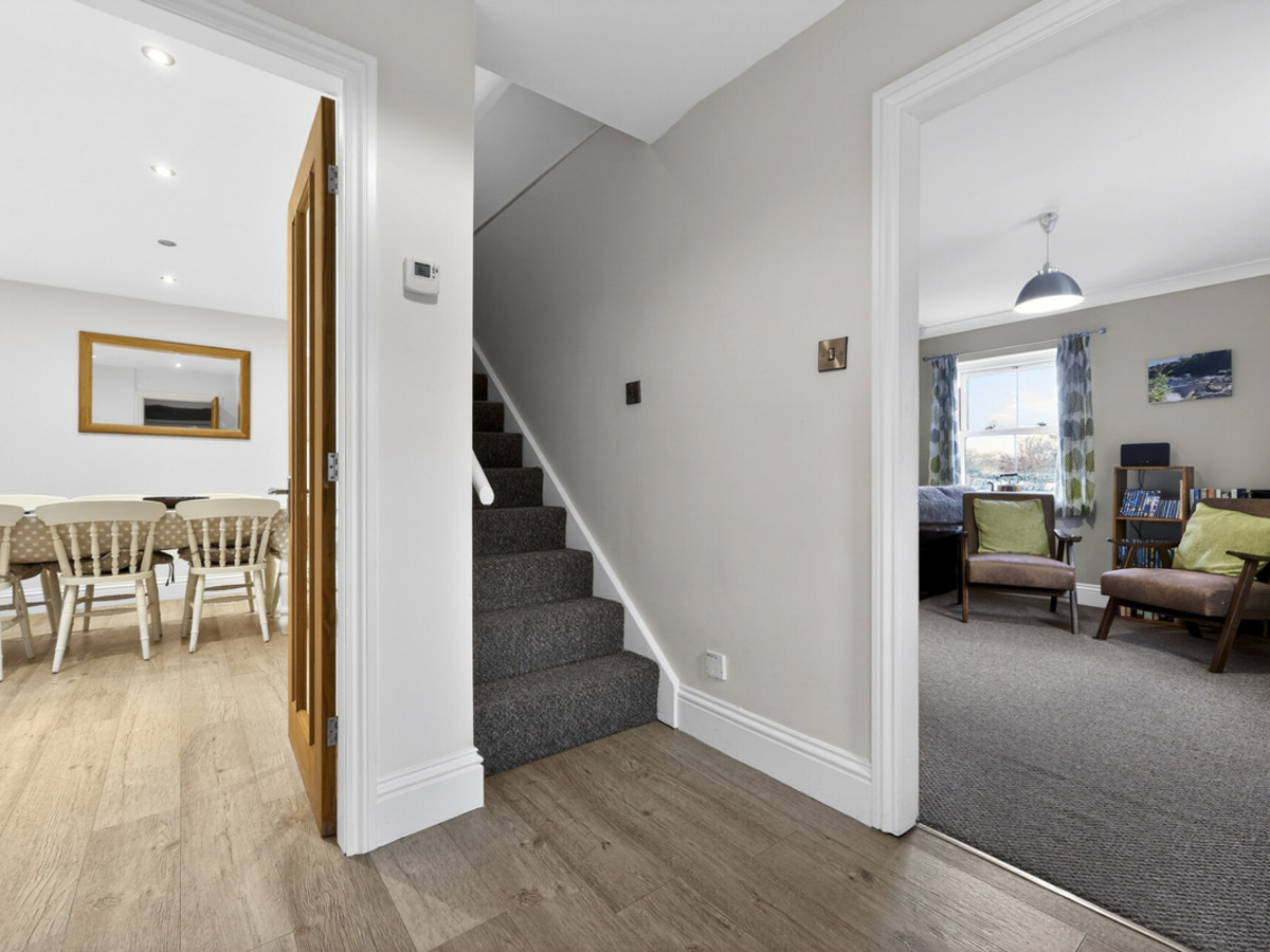 Externally, to the rear, a pretty cottage garden provides a perfect space for outdoor relaxation, with a lawn and patio area ideal for summer dining. The home also includes a garage and private parking, adding further appeal.