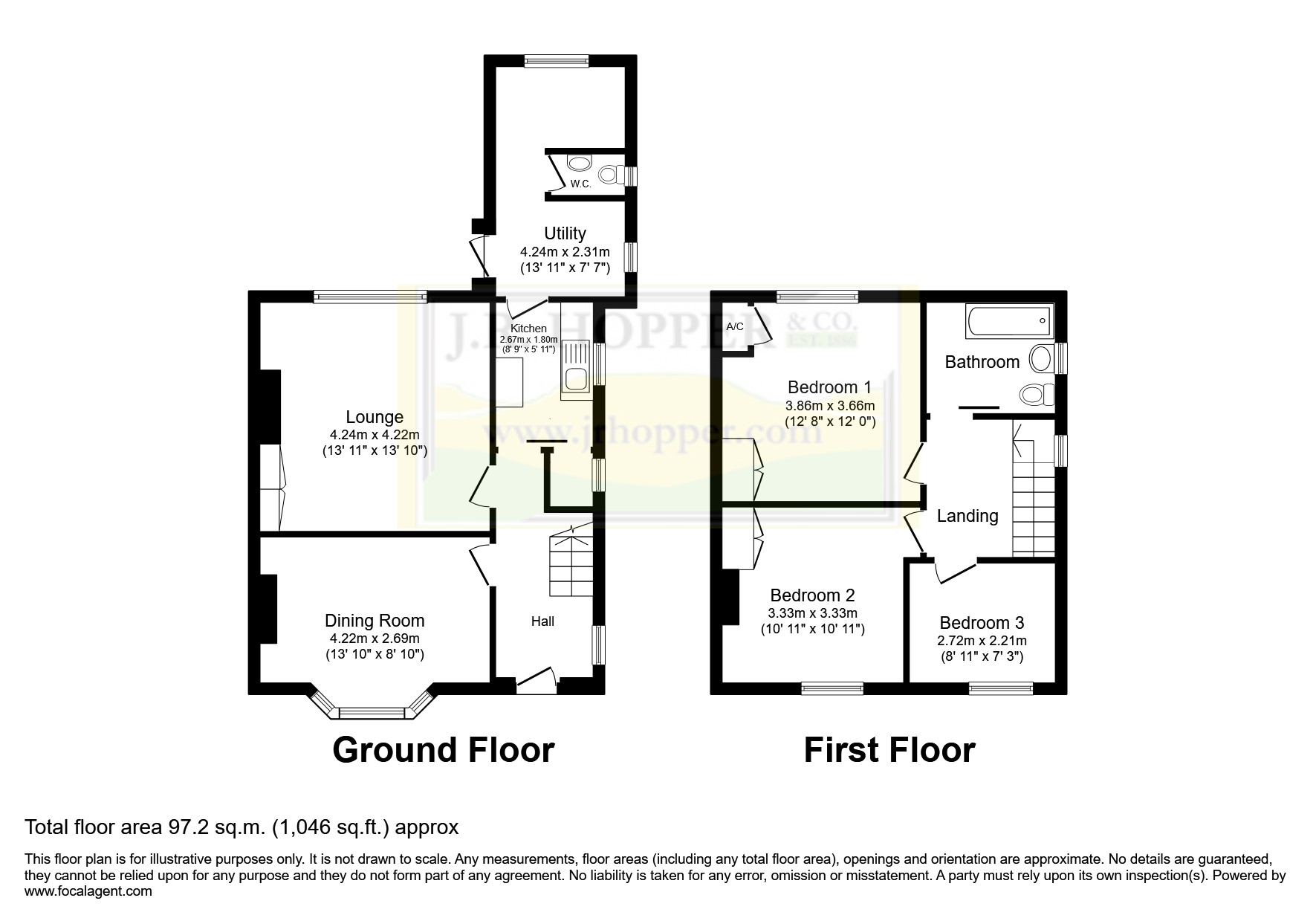 The property offers spacious accommodation over two floors, which is in need of some modernisation. On the ground floor the property comprises of a welcoming entrance hall, a spacious dining room with large bay window, living room with multifuel stove and built in storage, a well-appointed kitchen and a separate utility room and W/C.