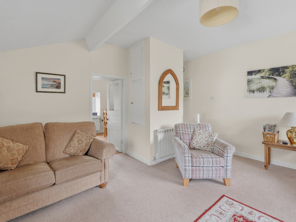 The property itself is an attractive “upside-down” house, thoughtfully designed to maximise light and views. The ground floor comprises two well-proportioned double bedrooms and a family bathroom. To the first floor, a bright and spacious lounge leads through to a well-appointed kitchen diner, creating an ideal space for both relaxing and entertaining.