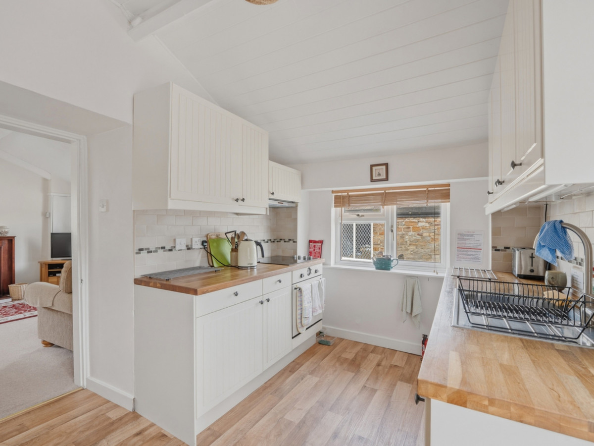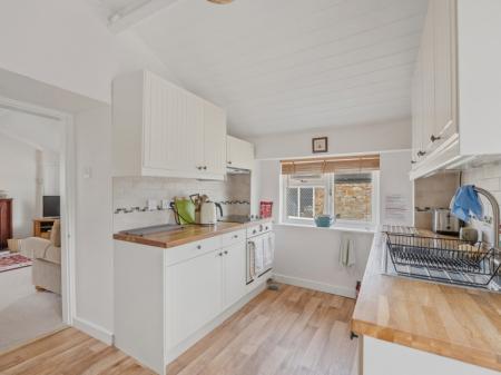 Externally, the property enjoys a delightful enclosed patio garden, perfectly positioned as a suntrap and enhanced by raised flower beds and mature shrubs. A useful attached lean-to storage shed with power and lighting provides practical additional space. The cottage also benefits from private off-street parking for one vehicle, alongside ample safe on-street parking adjacent to the village green.