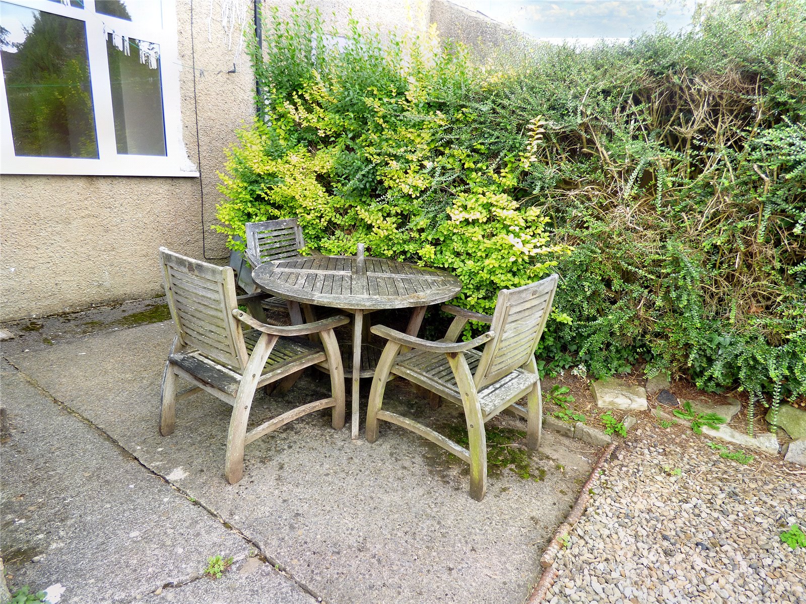 Rear Sout facing low maintenence patio garden. Potenial to make a larger garden. Oil tank.