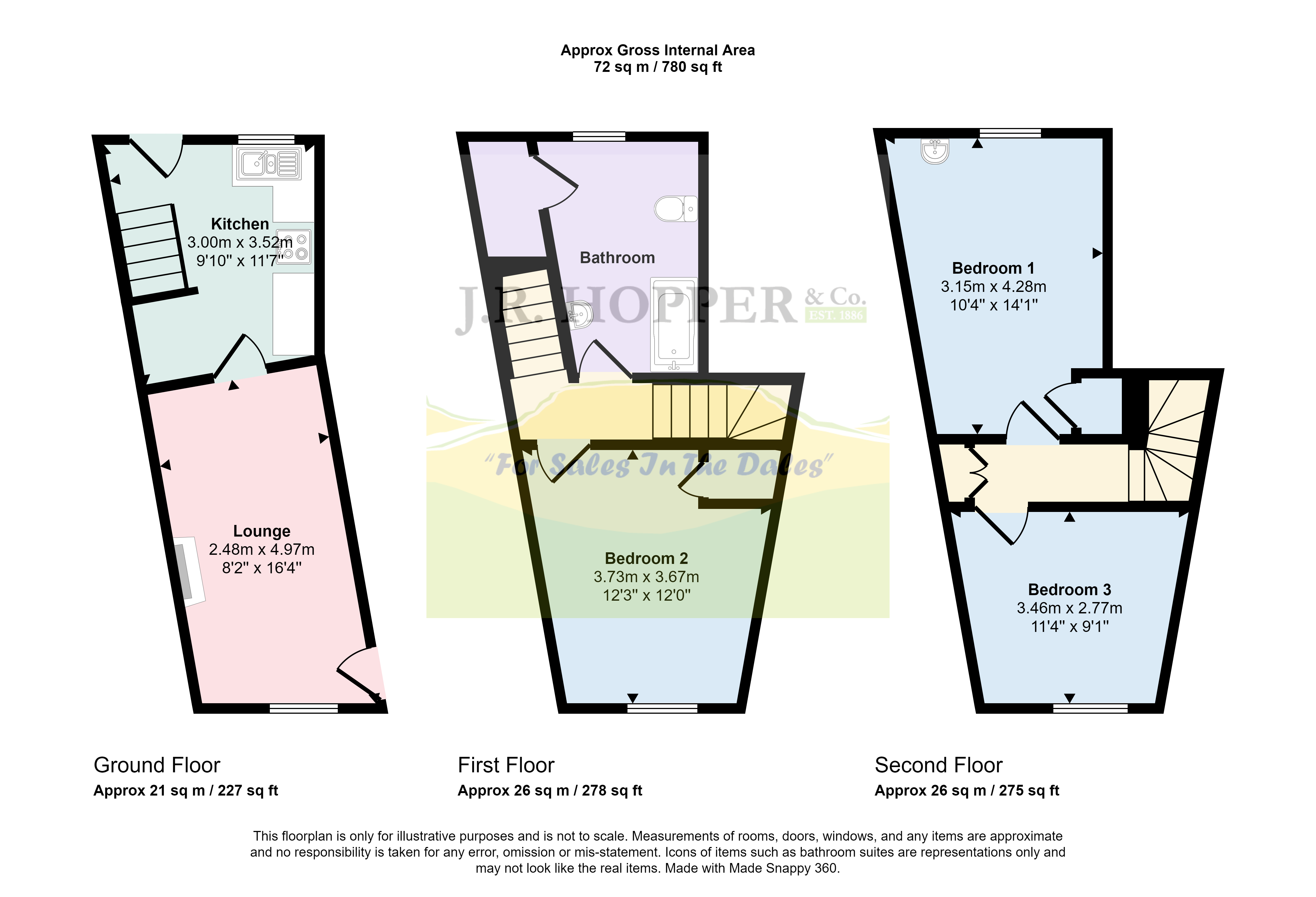 The property comprises of a cosy living room and light kitchen on the ground floor. To the first floor is a good double bedroom and bathroom and on the second floor, there are a further 2 double bedrooms.