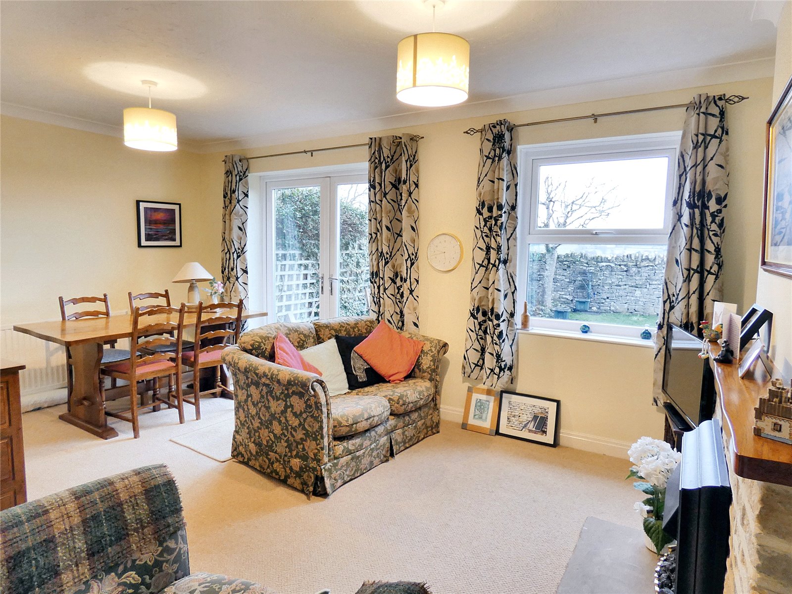 Living Room Fitted carpet. Coved ceiling. Electric fire. Stone fire place. Radiator. Double glass doors to rear garden. Window to rear.