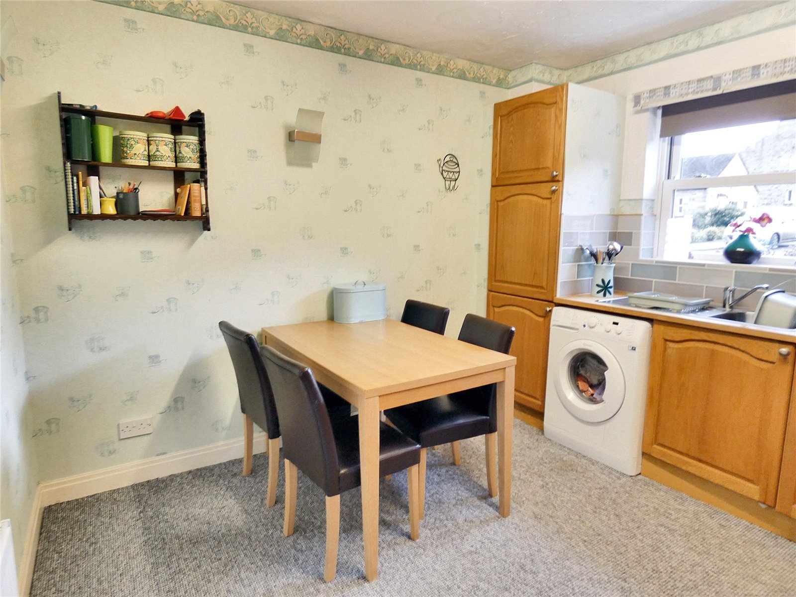 Kitchen Diner Fitted carpet. Radiator. Plumbing for washing machine. Intergrated cooker. tiled splashback. Good range of wall and base units. Wooden work top. Stainless steel sink and drainer. Window to front.