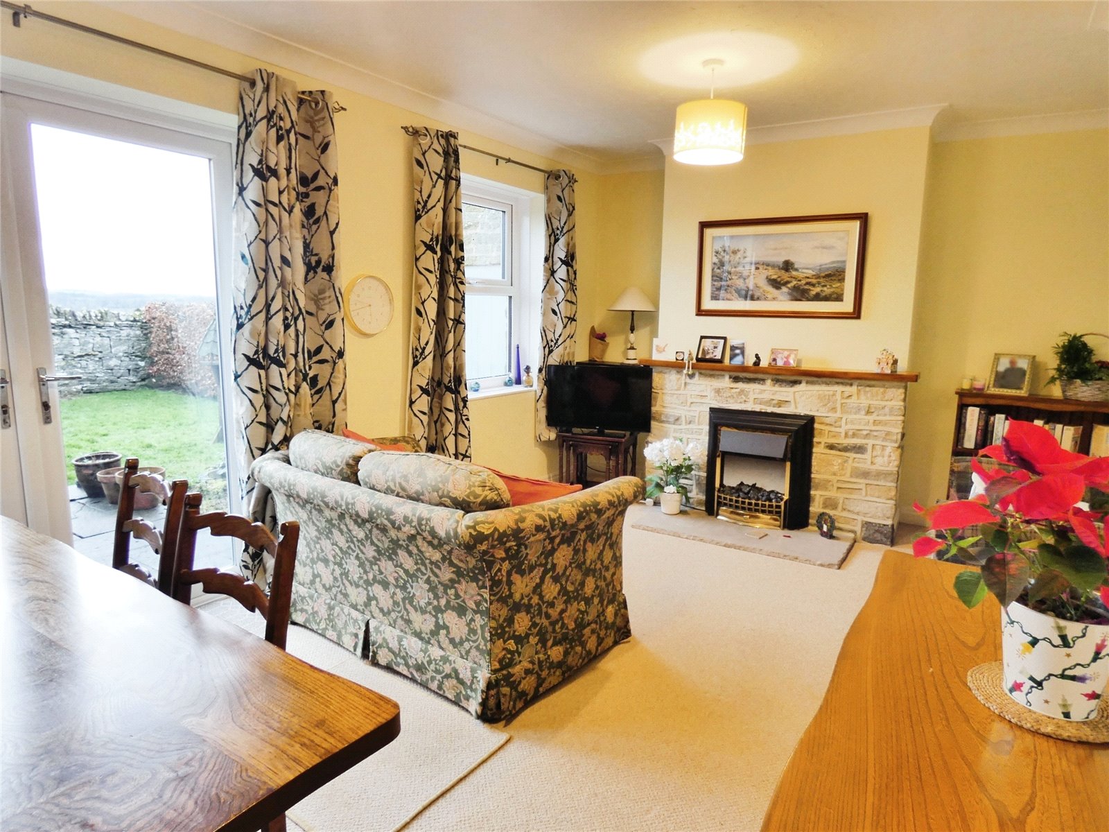 Outside to the front is a patio garden with well-established shrubs, driveway parking for 2 vehicles and a garage. To the rear there is an enclosed garden with lawn, patio area, flowerbeds and far reaching views across the Dales.