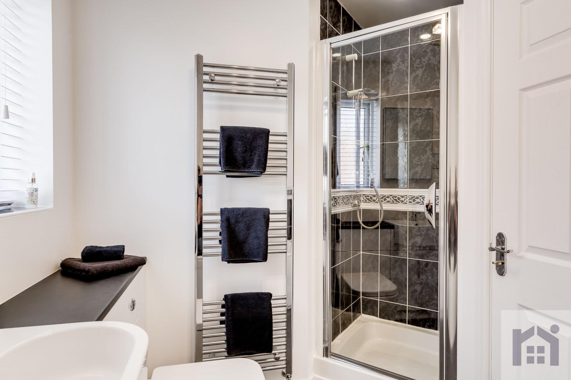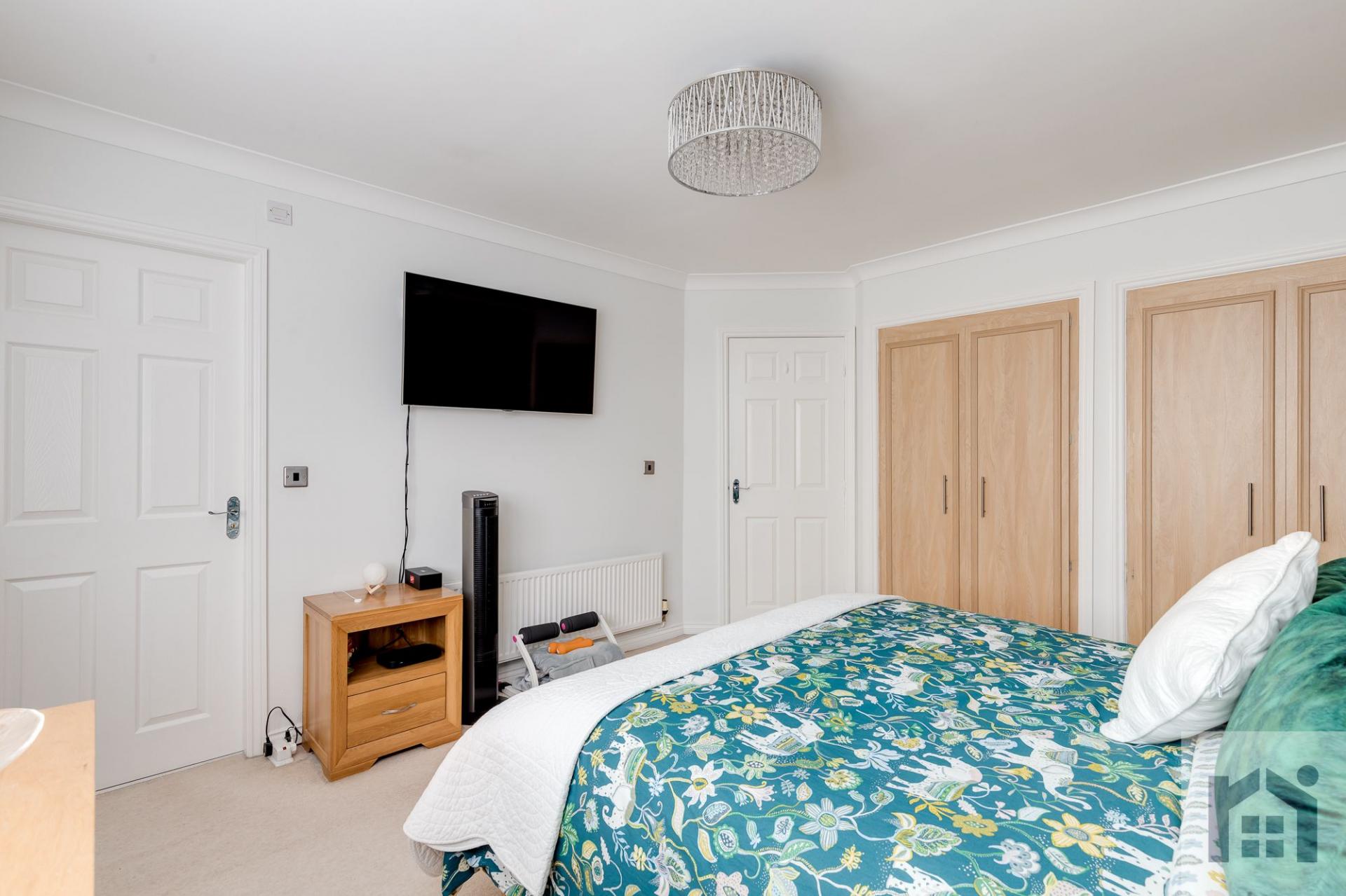 Back inside to the first floor the landing has ladder access to the part boarded loft and airing cupboard. Three double bedrooms each have individual built in wardrobes with the largest having en suite comprising rainfall mixer shower, with digital shower pump fitted for maximum flow, in cubicle, floating wash hand basin, wc and fully tiled flooring and elevations. Bedroom four can also house a double and is currently used as a home office. The family bathroom comprises bath, wash hand basin on vanity, wc and mixer shower in cubicle. All storage needs are already sorted with each bedroom featuring fully fitted wardrobes.