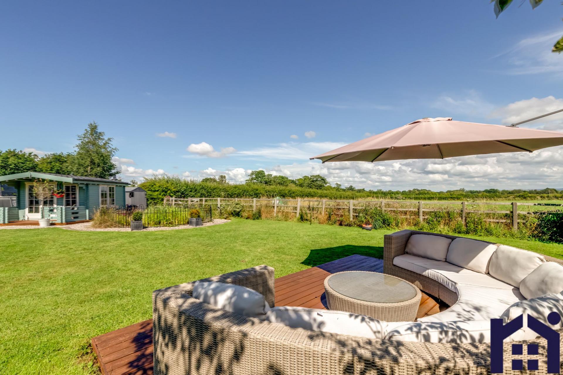 Step outside onto the upper terrace and enjoy the tranquillity of the setting and the view. The lower terrace has a purpose built pizza oven, food preparation area and Belfast sink, and courtesy door to the detached garage. Stroll down the lawn past the greenhouse and childrens play area, to the enclosed lily pond adjacent to the insulated summerhouse with veranda, power and wood burning stove. Just across the lawn is the very private evening deck area, the perfect place in which to relax and entertain.