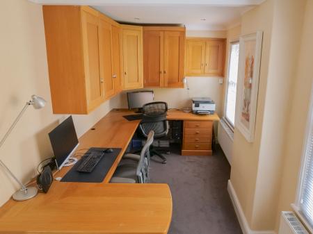 Double doors lead to the dining room, with patio doors to the garden, and from which this element of the property could be a discreet annex with home office/bedroom five leading off, adjacent to an en suite comprising rainfall mixer shower in walk in cubicle, wash hand basin and vanity unit, wc, ladder heated towel rail and Ideal central heating boiler.
