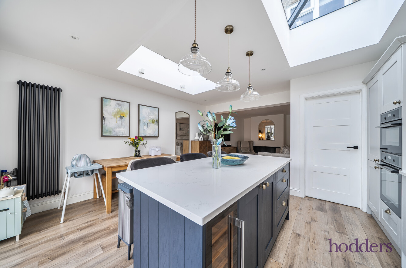 This exceptional three-bedroom detached family home has been fully modernised throughout by the current owners and thoughtfully extended on the ground floor to create a stunning open-plan kitchen, dining and living space, perfectly designed for modern family life and entertaining. This impressive space enjoys an abundance of natural light and provides direct access to the rear garden, seamlessly blending indoor and outdoor living. The ground floor further benefits from a practical utility area and a spacious front reception room, ideal as a formal lounge, playroom or home office.To the first floor are three generous double bedrooms, all beautifully presented, along with a luxury three-piece family bathroom suite finished to a high specification, offering a stylish and relaxing space.Externally, the property enjoys a large lawned rear garden, ideal for families and summer entertaining, alongside a garage perfect for storage and a driveway providing off-road parking for multiple vehicles. The home has been finished to an excellent standard throughout and is ready for immediate occupation.Ideally positioned, the property is within easy reach of a range of highly regarded local schools, making it perfect for families. A variety of everyday amenities including shops, cafés, parks and leisure facilities are close by, while the town centre offers a wider selection of retail, dining and entertainment options. The nearby train station provides excellent commuter links, ensuring convenient access to surrounding towns and cities. This is a fantastic opportunity to acquire a stylish and spacious family home in a highly desirable and well-connected location.