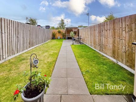 The property has two allocated parking spaces located to the right hand side of the property. To the rear of the property is a paved patio with pathway leading to a further patio set to the rear of the garden, shaped lawn areas, fenced surround and useful garden access to the rear leading to the parking spaces.