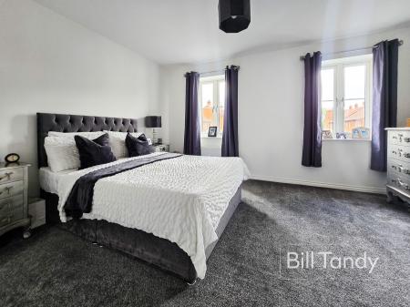 4.19m x 3.40m (13' 9" x 11' 2") having two double glazed windows to front, radiator and useful over stairs store cupboard.
