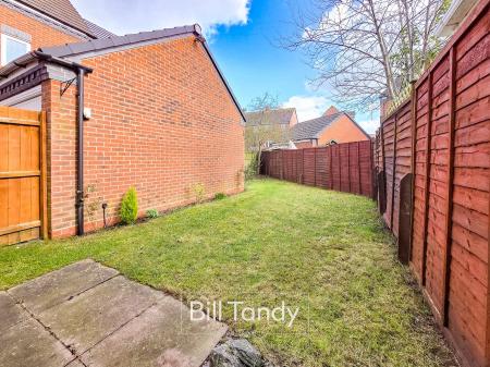 The property has a tarmac tandem driveway to the left hand side leading to the garage and side gate to rear garden. To the rear of the property is a paved patio and shaped lawn beyond with fenced and walled surround.