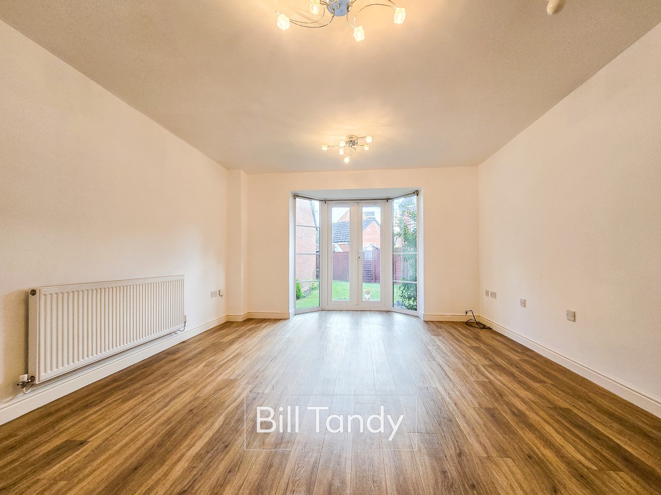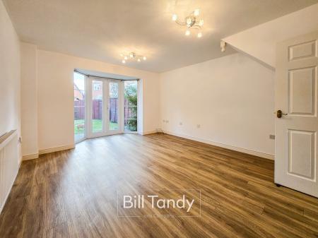 5.24m max into bay (4.51m min) x 3.90m (17' 2" max into bay 14'10" min x 12' 10") having double glazed walk-in bay window to rear with French doors to garden, LVT flooring flowing through from the hallway, two ceiling light points and radiator.
