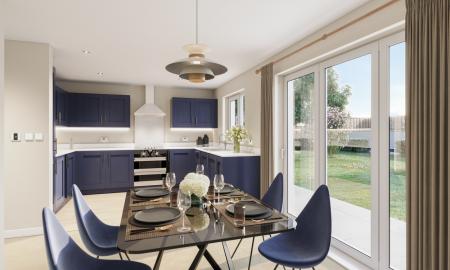 The Meadwell is a four bedroom family home with an integral garage. The stone fronted design gives great kerb appeal. The ground floor has a spacious lounge, WC and storage cupboard. Leading to the back of the property there is an open plan kitchen/dining area with bifold doors leading to the garden. This home also boasts a utility room with another side access door leading to your parking.