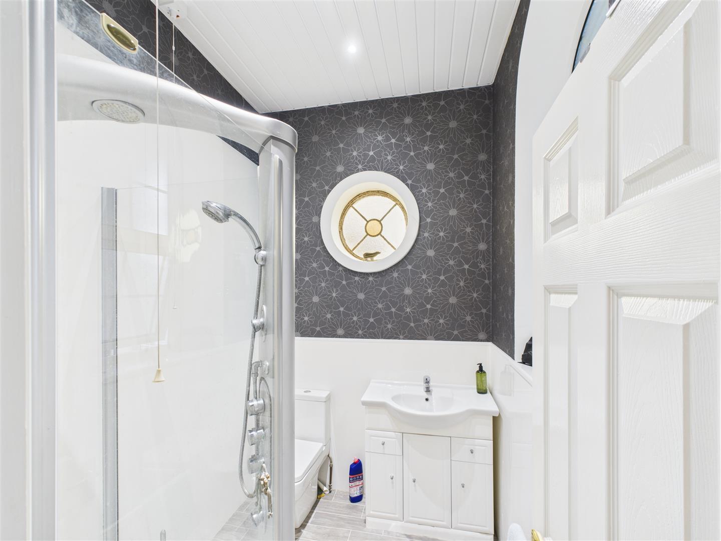 En-Suite: - 2.1 x 1.8 (6'10" x 5'10") - Fully panelled shower cubicle with electric shower. Feature porthole window. Low Flush W.C. Wall mounted wash hand basin. Tiled flooring.