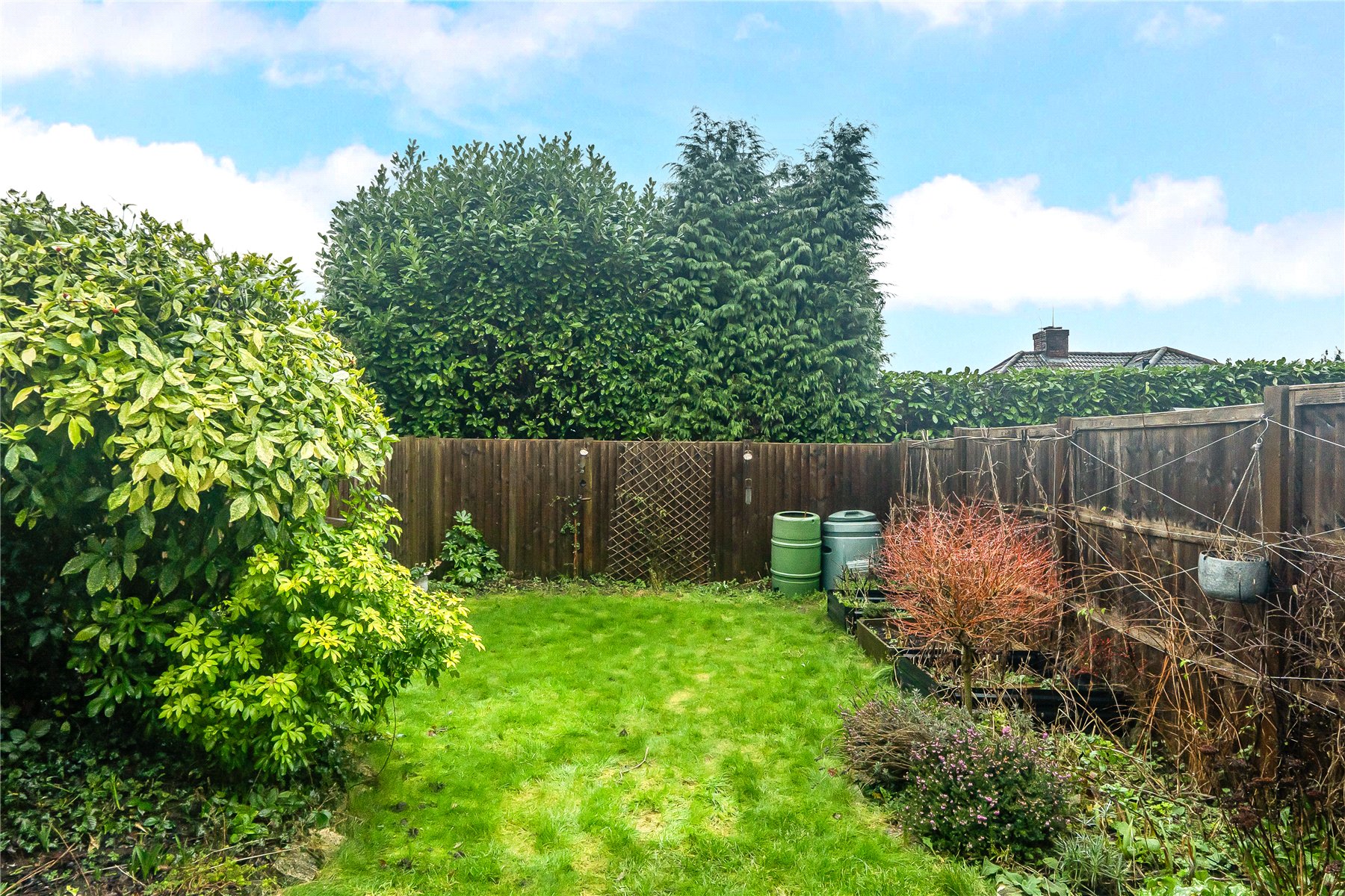 Outside, the private garden is mainly laid to lawn with surrounding flower beds and a patio area, enjoying a sunny westerly aspect. The garden can also be accessed via a convenient side gate.