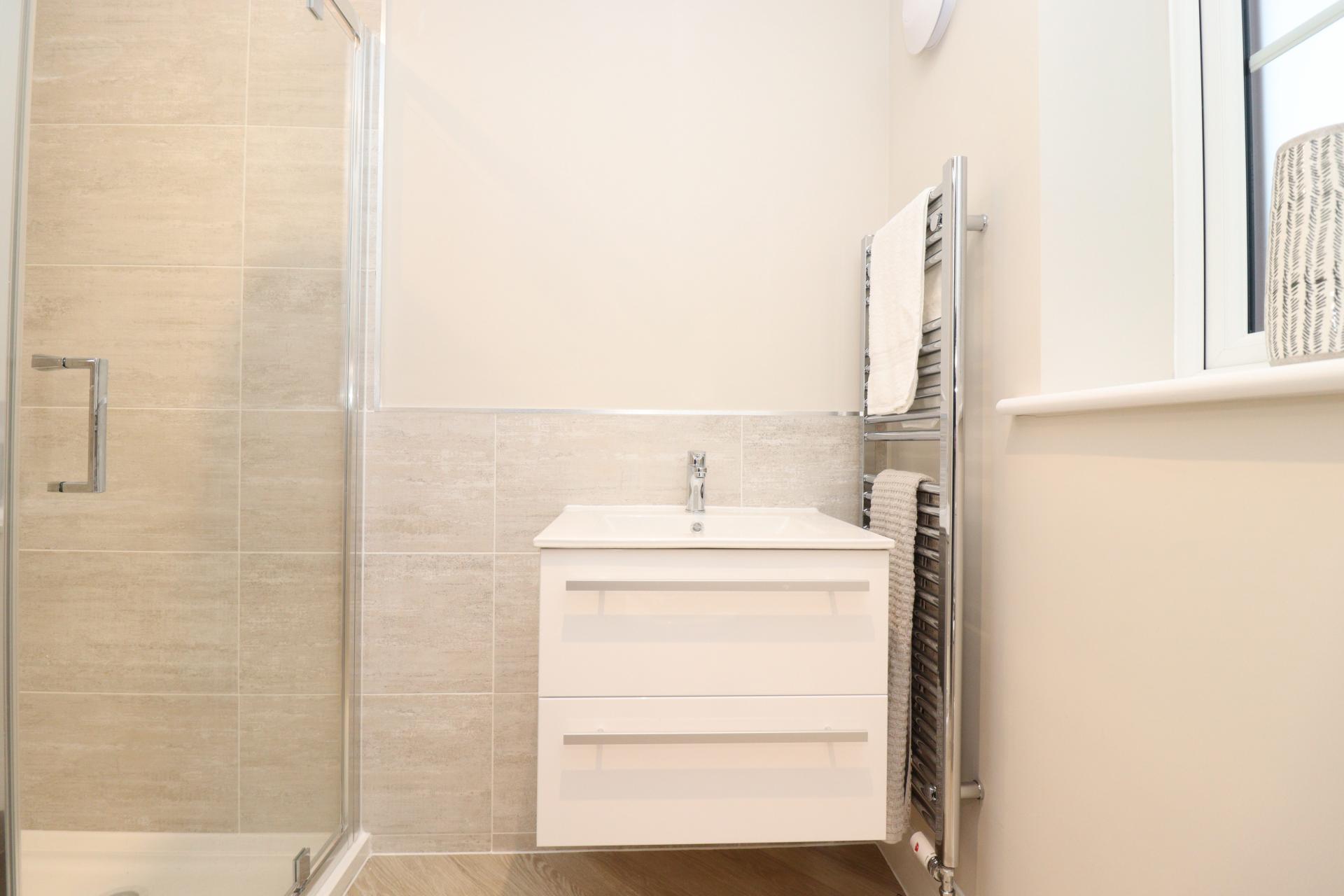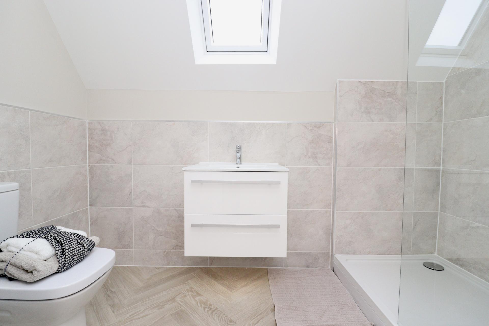 Full height ceramic wall tiles to shower enclosures and/or bath surrounds, tiled window cills and half height tiling to any walls with sanitaryware