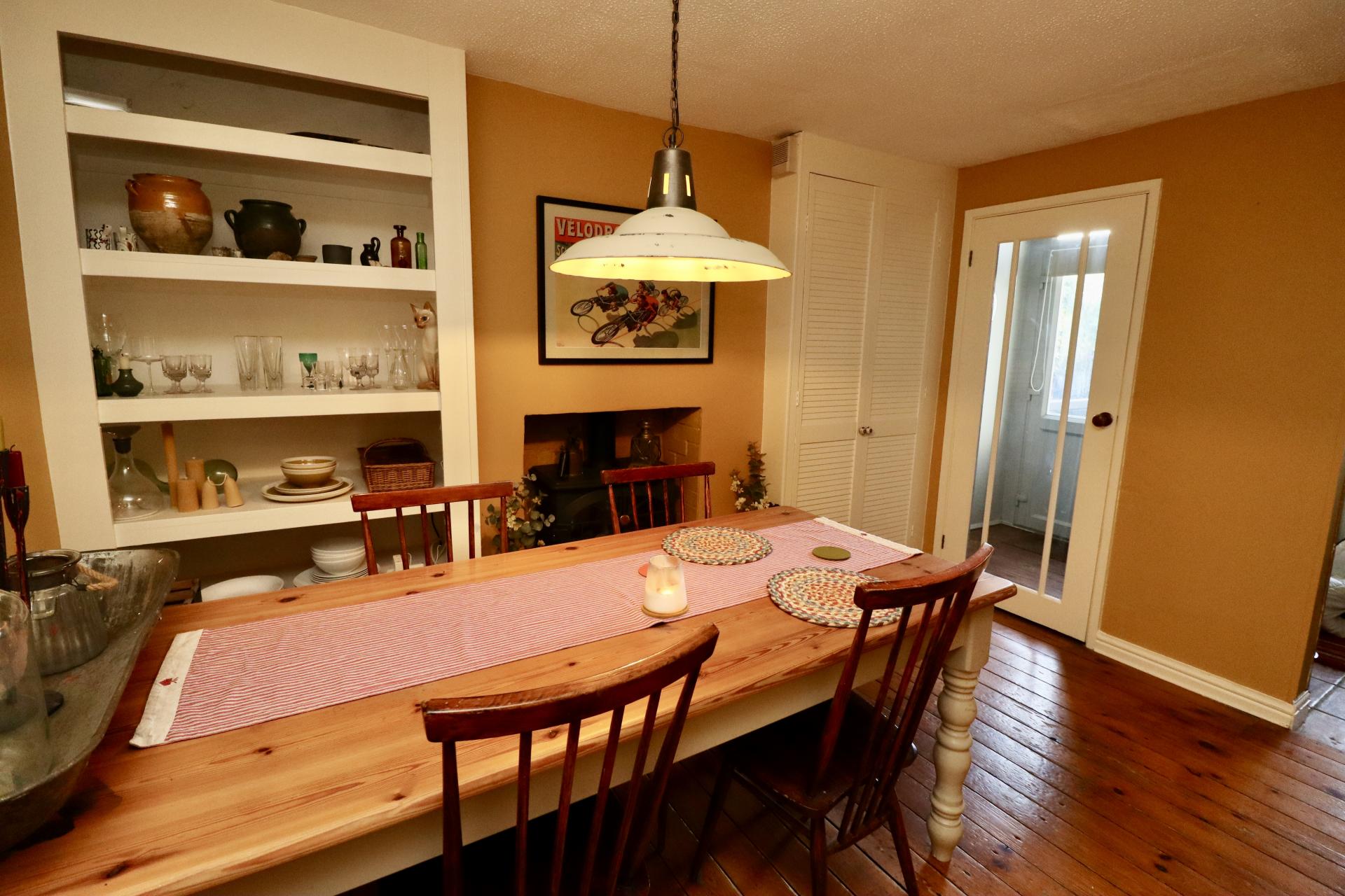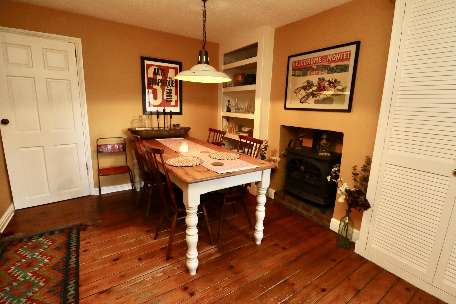 DINING ROOM 11' 8" x 10' 7" (3.57m x 3.25m) With electric log burner, storage cupboard, exposed floorboards and radiator.