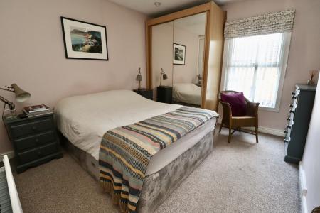 BEDROOM 1 10' 7" x 10' 9" (3.23m x 3.28m) With over stairs storage cupboard, fitted wardrobe, double glazed windows to the front aspect, spotlights and radiator.