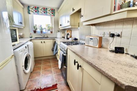 KITCHEN 12' 3" x 6' 9" (3.75m x 2.08m) Fitted with a range of wall and base units with work surfaces over, 1 1/2 bowl sink with side drainer and mixer tap, spaces for cooker, washing machine, fridge freezer and slimline dishwasher, tiled flooring, splashbacks and two double glazed windows to the side and rear aspects.