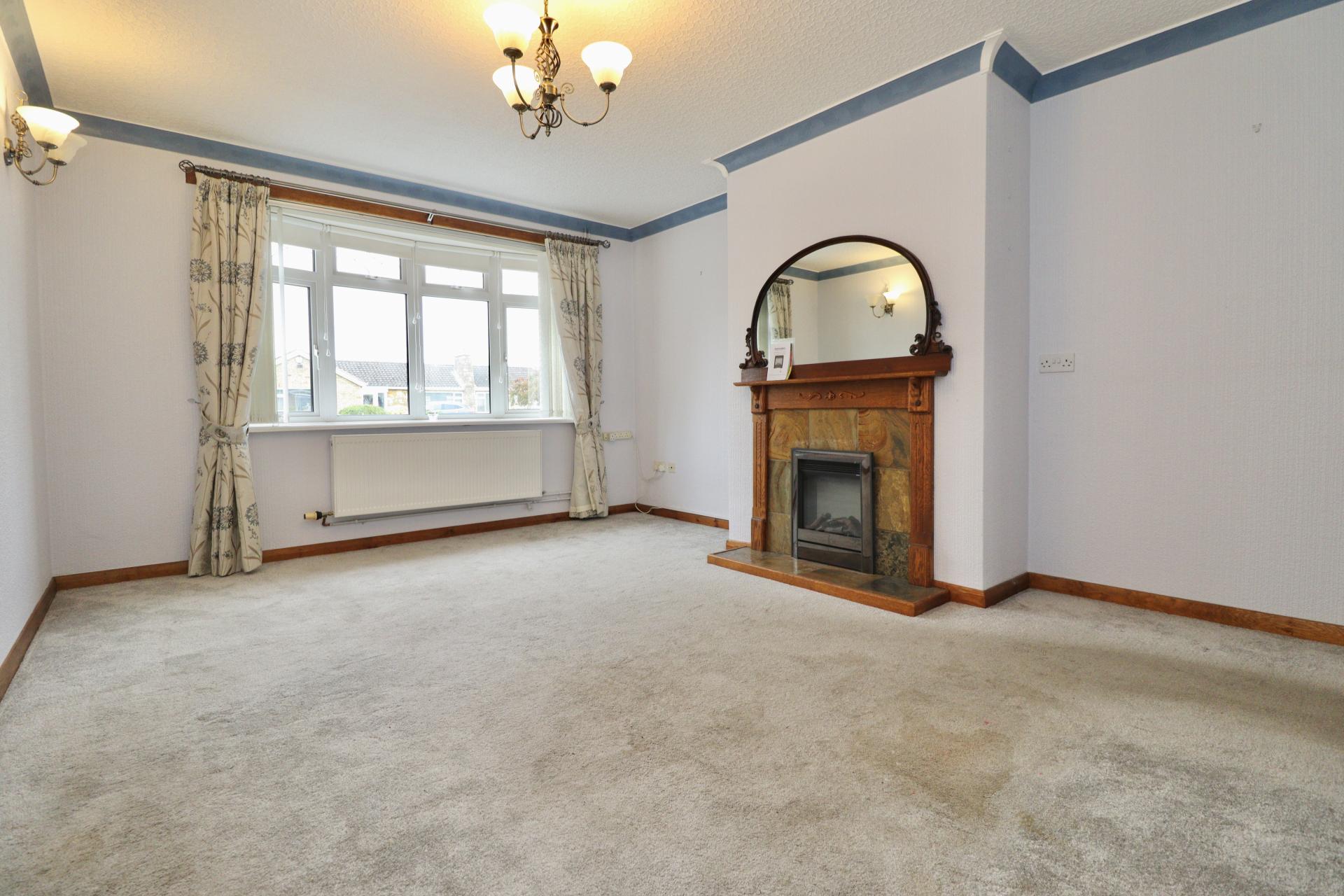 LOUNGE 15' 9" x 11' 11" (4.81m x 3.64m) With UPVC bay window to the front aspect, radiator, electric fire with tiled hearth and wooden surround, coving to ceiling and wall lights.