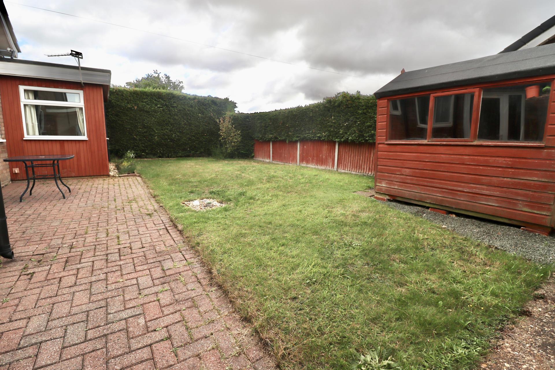 OUTSIDE The property sits on a generous corner plot with gardens to the front, side and rear. To the front there is a lawned garden with established shrubs inset. To one side there is a lawned garden and to the other there is a long driveway providing off street parking for multiple vehicles and access to the single garage. The garage has an up and over door to the front and double glazed window to the side. To the rear of the property there is an enclose garden laid mainly to lawn with block paved seating area and garden shed