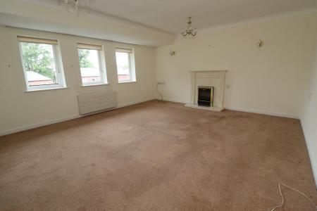 LOUNGE 16' 4" x 14' 11" (5.00m x 4.56m) With three double glazed windows, electric fire set with in feature fireplace, wall lights and radiator.